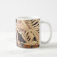Caneca do esqueleto de Kuniyoshi. Período de Edo Japão do woodcut de Ukiyo-e desde 1845. Utagawa Kuniyoshi era um do último grande mestrado do estilo do ukiyo-e, e Mitsukini que provoca o esqueleto é um de seu os trabalhos os mais reconhecidos e os mais comemorados. O woodcut caracteriza o herói Kuniyoshi tirando espadas contra um esqueleto gigante que olha sinistra para baixo nele. Um presente bonito e assustador para fãs de Utagawa Kuniyoshi, pinturas de esqueleto, e art. japonês.