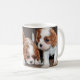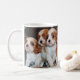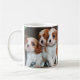 caneca com os filhotes de cachorro descuidados do spaniel de rei Charles