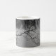 Mug com uma foto em preto e branco de um lago com galhos de árvores e lindas reflexões.