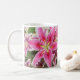 Caneca do lírio de tigre da Oração Nosso Pai do senhor. A Oração do senhor em um lado e em uma explosão de lírios de tigre no outro lado