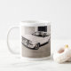 Uma caneca com uma imagem de um Ford Escort Mk2 1,6 México em um lado e na legenda de "PILOTO OLDBOY" no outro. A imagem é uma reprodução de uma pintura de Fox "coleção moderna do Sid dos clássicos".