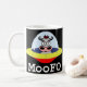 A caneca do UFO de MooFO é um copo de café que caracteriza uma vaca em uns pires de vôo.