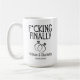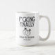 Celebre o "SIM" tão esperado com esta caneca de noivado engraçada que apresenta a frase ousada "F*cking Finally", combinada com anéis de noivado elegantes e nomes de casal e data personalizados.