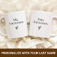Celebre o amor e os novos começos com esta Caneca Personalizada com Sobrenome dos Recém-Casados, um lindo presente para casais que estão começando sua vida juntos. Com frases românticas como Esposa e Marido ou divertidas como Esposinha e Maridinho, esta caneca é um presente atencioso e elegante para noivados e casamentos. Esta caneca de cerâmica personalizada para noivado é perfeita como presente de casamento para casais, um presente doce para recém-casados ou até mesmo uma adição divertida para presentes de despedida de solteira. Personalize com o novo sobrenome compartilhado do casal, data de casamento ou título especial para criar um presente único que eles vão guardar para sempre. Perfeita para o café em sua primeira casa juntos, manhãs de lua de mel ou fins de semana aconchegantes como marido e mulher.
