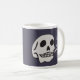 Aprecie um copo quente de Joe com um bocado do humor torcido. Crânio com cigarro iluminado que parece incandescer contra um profundo - fundo roxo. O outro lado lê, "Smokin quente".