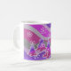 Uma paisagem de inverno moderna e estilizada com pinheiros foscos e flocos de neve espumantes. Mug com uma cinza de prata roxa, cor-de-rosa e branca personalizável para você personalizar com seu próprio texto, imagens e ideias. Disponível em todas as opções de estilo. Um lápis colorido digitalmente melhorado por Jess Perry.