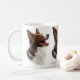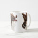 Design vermelho da cabeça de border collie em uma caneca.
