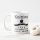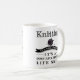 Confecção de malhas: Uma caneca Cargo-Apocalíptico da habilidade da vida que caracteriza a tipografia moderna e uma bola do fio com agulhas de confecção de malhas. Mostre fora sua paixão e seu sentido de humor subtil.
