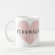 Coral cor-de-rosa, coração personalizado, caneca de café. Símbolo de amor vitage design. Um belo aniversário ou ideia de presente de casamento com o nome de noiva e noiva recém-casados.