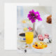 Café fresco, sumo de laranja e salada de fruta servidos no café da manhã