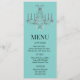 Definição de lugar Menu Blue Teme Chandelier Breakfast no Bride e Co Baby e Co Chá de panela Chá de fraldas Paris temático Definição de lugar