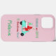 Imagem bonita e engraçada em uma capa de telefone que diz: "Correndo no café e na alegria de Natal" com uma mulher andando de patinete. Clique em "Personalizar" para personalizar este produto.