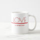 Mug com vermelho e branco com design mínimo para Dia de os namorados. Todo o texto pode ser personalizado.