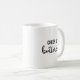Estas na moda e caneca caracterizam as palavras do "botão de ouro elogio acima" em letras pretas. O design limpo é grande receber transversalmente uma mensagem optimista e começá-los o dia com uma grande chávena de café ou chá, e uma mensagem positiva.