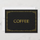 Simples e elegante sinal de casamento do estilo "Café", personalizado com seu próprio texto, apresenta um quadro de deco de arte dourada sobre um fundo preto. Este sinal de casamento chic "Café" parece excelente impresso em um papel mate, se você precisar de algo mais tradicional use o Laid, Linen ou Columned, se você quiser adicionar um toque de vidro, use o Luxe. Clicando no botão "personalizar", você pode acessar a ferramenta do editor e escolher uma cor de fundo diferente. Este é um sinal de cartão impresso plano de 5" x 7", que ficará muito elegante em uma imagem.