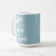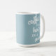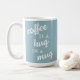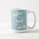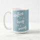Café é abraço numa caneca azul mudada
