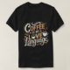 Uma camiseta na moda preta com um design ousado com a frase "Café é é Minha Língua de Amor" em uma mistura de letras laranja e branca, destacada com ilustrações de café. Perfeito para os entusiastas do café que expressam seu afeto através de seu peito favorito.