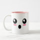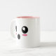 Esta caneca compartilha do amor para os emoji que expressam um sentimento de "choque" com mordentes blushy cor-de-rosa.