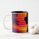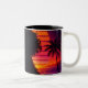 Caneca retro de pôr do sol com cockapoo apresentando uma bela silhueta de cockapoo contra um vibrante pôr do sol na praia. Este design é perfeito para donos de cockapoo, mães de cockapoo, pais de cockapoo e amantes de cães que adoram esta raça brincalhona e carinhosa.