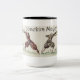 Uma caneca de café com imagens do Fencig alemão Joachim mestre Meyer. Esta caneca tem uma imagem de suas seções do longsword e do dussack.