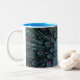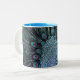 Um design de penas de pavão feito em azul, turquesa, chato, roxo e rosa. Um bonito contraste de cores e uma boa mudança do costume.