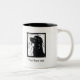 Escreva sua própria mensagem sob a imagem do cão preto, na parte dianteira e na parte traseira da caneca. (Nota que fronteia e traseiro relacione a uma pessoa destro, se não serão trocados ao redor.)