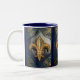 Café Em Dois Tons Flor de lis dourada na caneca do impressão azul