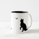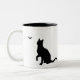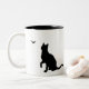 Silhueta de um gato curioso perseguindo uma borboleta.