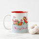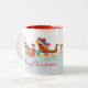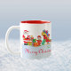 Papais noeis, seus elfos e sua equipe de renas decoram esta feliz caneca de férias. Mande seus desejos pessoais de Natal com este presente colorido. Eles são perfeitos para o café da manhã de Natal ou para guardanapos.