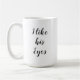Eu gosto dos olhos dele, escritos em um guião fluido e grátis decoram esta caneca fofa, fazer um doce presente para Dia de os namorados, um aniversário ou aniversário. Claro que "dele" pode facilmente ser mudado para "ela", se preferido. Coordena-se perfeitamente com a caneca "Eu gosto do Bumbum dela".