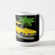 Grande caneca de café que caracteriza o carro engraçado do motor traseiro de BackMotor, em um ajuste tropical!!