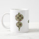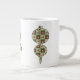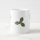 Quatro quadrados em verde e bronzeado são enfeitados com ornamentos vermelhos decorados com flocos de neve brancos e holly verde com bagas vermelhas. A costura branca acrescenta um toque decorativo, dando ao padrão repetitivo a aparência de uma colcha, criando um sentimento perfeitamente aconchegante para o feriado de Natal. A forma de um ornamento de lágrima cria uma máscara para o design adicionar um toque sazonal final. Esta caneca está disponível em jumbo, espresso e tamanhos e estilos de porcelana óssea.