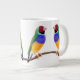 O design original das belas artes de passarinhos coloridos de Gouldian pelo artista Carolyn McFann do estúdio de ronrom de dois gatos imprimiu em uma caneca enorme da qualidade para fãs do passarinho.
