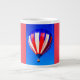 Um balão de ar quente colorido cobre a frente desta caneca.