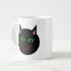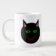 Esta caneca espetacular apresenta um gato preto com orelhas pontiagudas, olhos verdes brilhantes e um sorriso vermelho sorridente. Este gatinho assustador é perfeito para o Halloween ou para amantes de gatos.