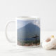 Deixe o mundo conhecê-lo amor Guatemala com esta caneca bonita. Caracteriza um tiro cénico da água de Volcan em em uns lado e "mim coração Guatemala" no outro, com o coração do tecido do tipico.