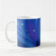 Ilustração do cumprimento de Eid com uma cena mágica do céu da noite: silhueta de uma mesquita em um céu nocturno azul com estrelas brilhantes.