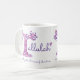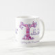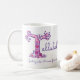 Bonito letra T, nome da arte do monograma, que significa caneca em rosa e roxo. Personalize com seu próprio nome começando com T e o nome significando para um toque verdadeiramente personalizado para bebidas, este exemplo é para o nome Tahlulah com um significado de Gushing water. Princesa da abundância ou você pode mudar o significado com suas próprias palavras. © Monograma único de corações e flores T desenho descrição e design de arte gráfica por Sarah Trett. www.sarahtrett.com para www.mylittleeden.com