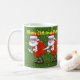 Um legal Papai noel de esqui inventa esta engraçada caneca de Natal. Personalizável para que você possa adicionar seu próprio texto e alterar a cor de fundo. Feriados felizes com este design bonitinho.