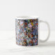 Fotografia das peças de quebra-cabeça de serra de vidro impressas em ambos os lados da caneca.