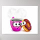 Uma design de um café quente e uma rosquinha juntos. Tanto a xícara de café como a rosquinha têm olhos e se encaram. Este café quente e uma design de rosquinha parecem excelentes nesta Poster