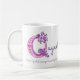 Q nome inicial que significa caneca de rabisco rosa. Lê o Quyen Mensageiro Espiritual vive tranquilamente com propósito. Carta original de arte e design por Sarah Trett para www.mylittleeden.com e nome