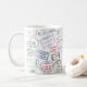 Mug com carimbos de passaporte mundial impresso.