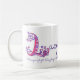 Letra tirada mão decorada com seu próprio começo conhecido com a caneca do significado de L e de nome. O capital bonito L do coração e da flor doodled o design tipográfico que caracterizam corações e flores e as palavras Lucy Bringer da luz. Brilho & adorável no rosa e no roxo. Arte e design originais do © por Sarah Trett. www.sarahtrett.com para www.mylittleeden.com no zazzle