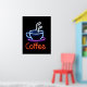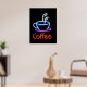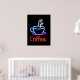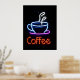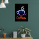 Impressão de foto de um sinal de neon de café em um poster preto.