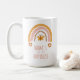 A caneca de café "Mama's Cup of Feliness" é uma fusão deliciosa de estilo e sentimentalidade. Apresentando um design de arco-íris branco, ele adiciona um pop de cor e humor à sua rotina diária. Seja bebendo sua mistura favorita de café, chá ou cacau quente, esta caneca certamente trará um sorriso ao seu rosto. O nome é editável para que possas mudar a "Mãe" para outra palavra curta como Mãe, Mamãe, Nonna, Nana.