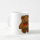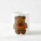 Café Urso de ursinho com uma caneca vermelha do arco