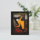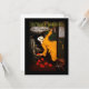 "La Victoria Arduino por Caffe Espresso". Homem na capa de chuva se inclina do trem para pegar uma xícara de vapor ou espresso. Art Deco design.