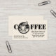 Este cartão de visita de travamento do olho caracteriza uma imagem gráfica preto e branco impressionante e simples do clipart que mostra uma mão que guardara uns pires e um copo do café quente, recentemente fabricado cerveja com um redemoinho do vapor. Os amantes e os vendedores do café igualmente apreciarão esta maneira original de anunciar os serviços do barista, as cafetarias, os produtores do feijão de café, as organizações de comércio justas etc.