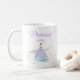 Se você se sente como uma princesa esta caneca de café é para você. Esta caneca de café também é um presente perfeito para alguém que você pensa como uma caneca de café princesa. Linda caneca de café da princesa com tiara. Grande texto roxo diz "Princesa" no topo da xícara. Design de cor suave e multicolorido em belos vestidos e faíscas.